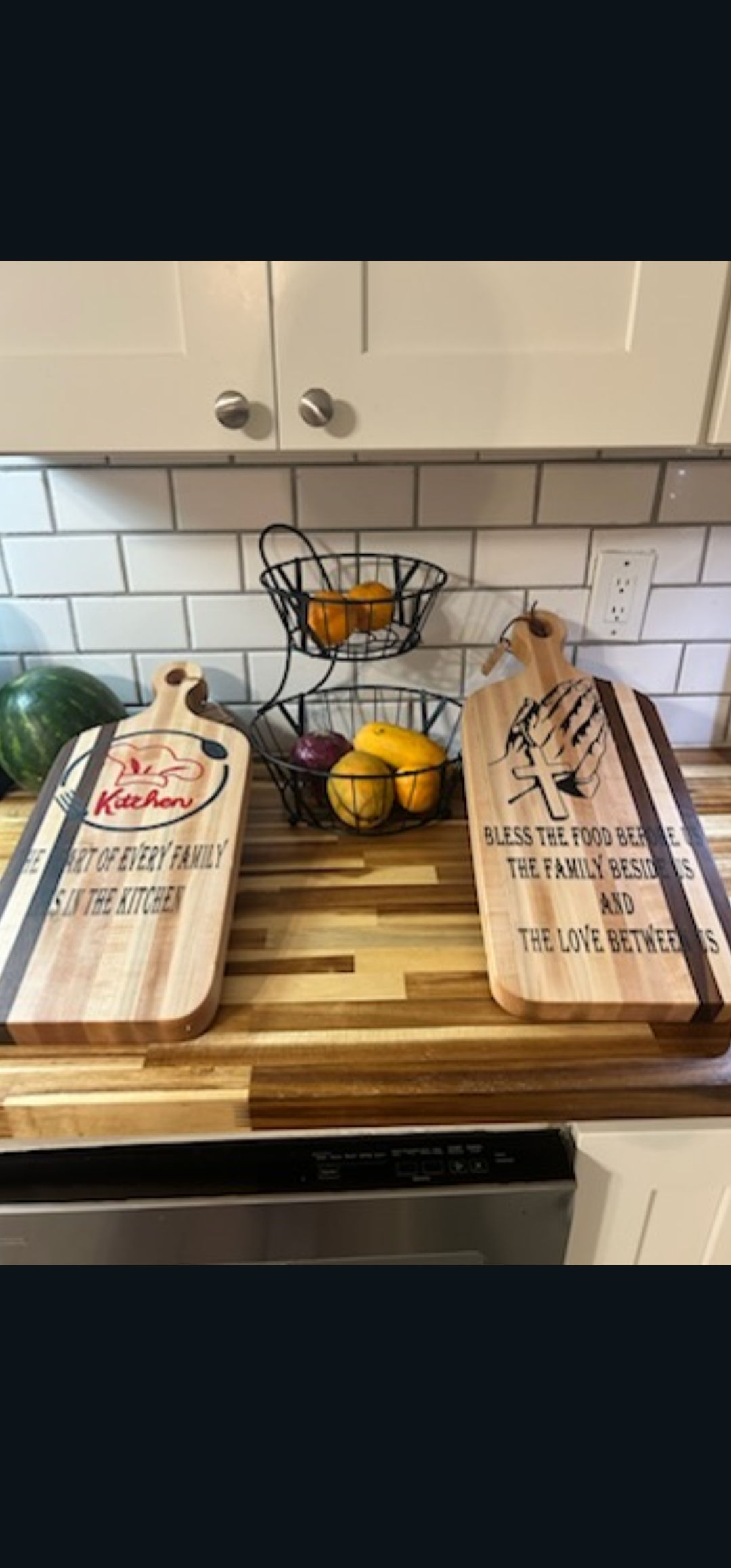 Invest in the “Bless The Food Prep & Serve Cutting Board” and bring charm, elegance, and heartfelt meaning to your kitchen. Embrace the beauty of solid maple hardwood, complemented by sophisticated walnut accents, and let the “Bless The Food” message serve as a daily reminder of gratitude and appreciation. Create memorable meals, nourish your loved ones, and celebrate the joy of shared experiences with this remarkable cutting board as your trusted companion. May your kitchen be filled with love, warmth, and delicious creations.