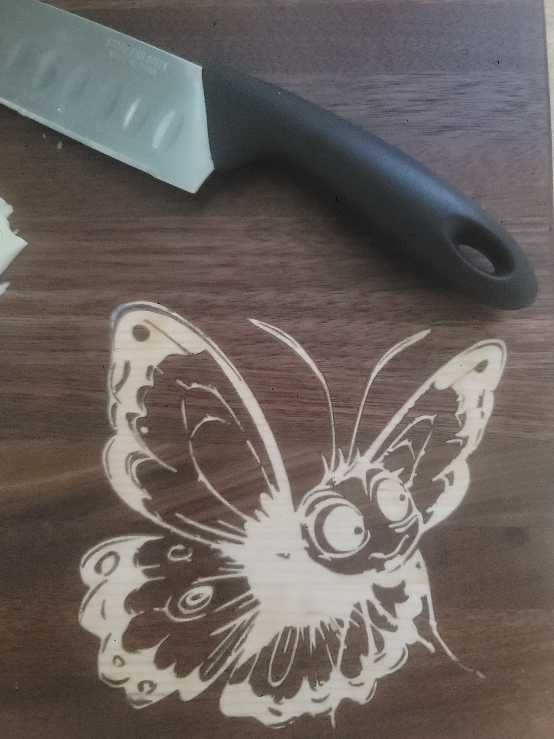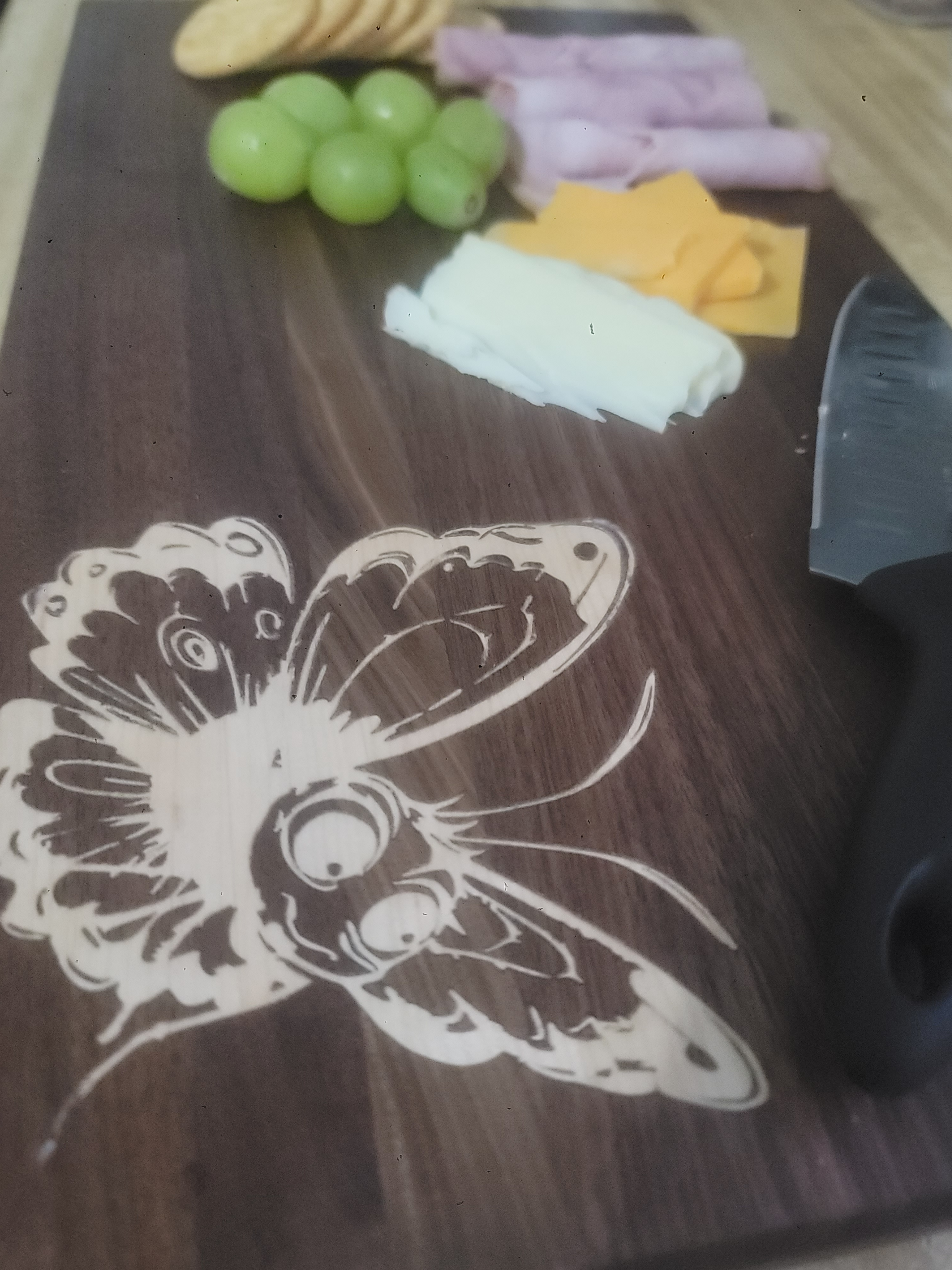 IHandmade from rich walnut and inlaid with a single maple butterfly, this board is a symbol of transformation — and a reminder that beauty can live in the everyday.