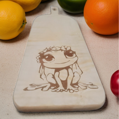 Brighten up your kitchen with the Happy Frog Mini Charcuterie Board, crafted from durable maple hardwood and featuring a delightful walnut inlay of a playful frog. Measuring 6 inches tall, 17 inches wide, and 0.75 inches thick, this compact board is perfect for serving single portions of snacks—whether it’s cheese, crackers, fruit, or your favorite charcuterie selection.